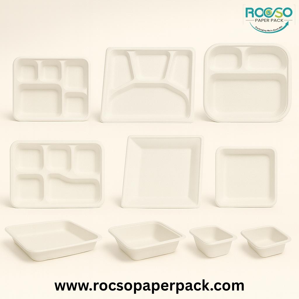 Bagasse Plates & Bowls एक high-quality, eco-friendly food packaging solution है, जो sugarcane pulp से बनाया जाता है। ये पूरी तरह biodegradable, compostable और microwave + freezer safe हैं।