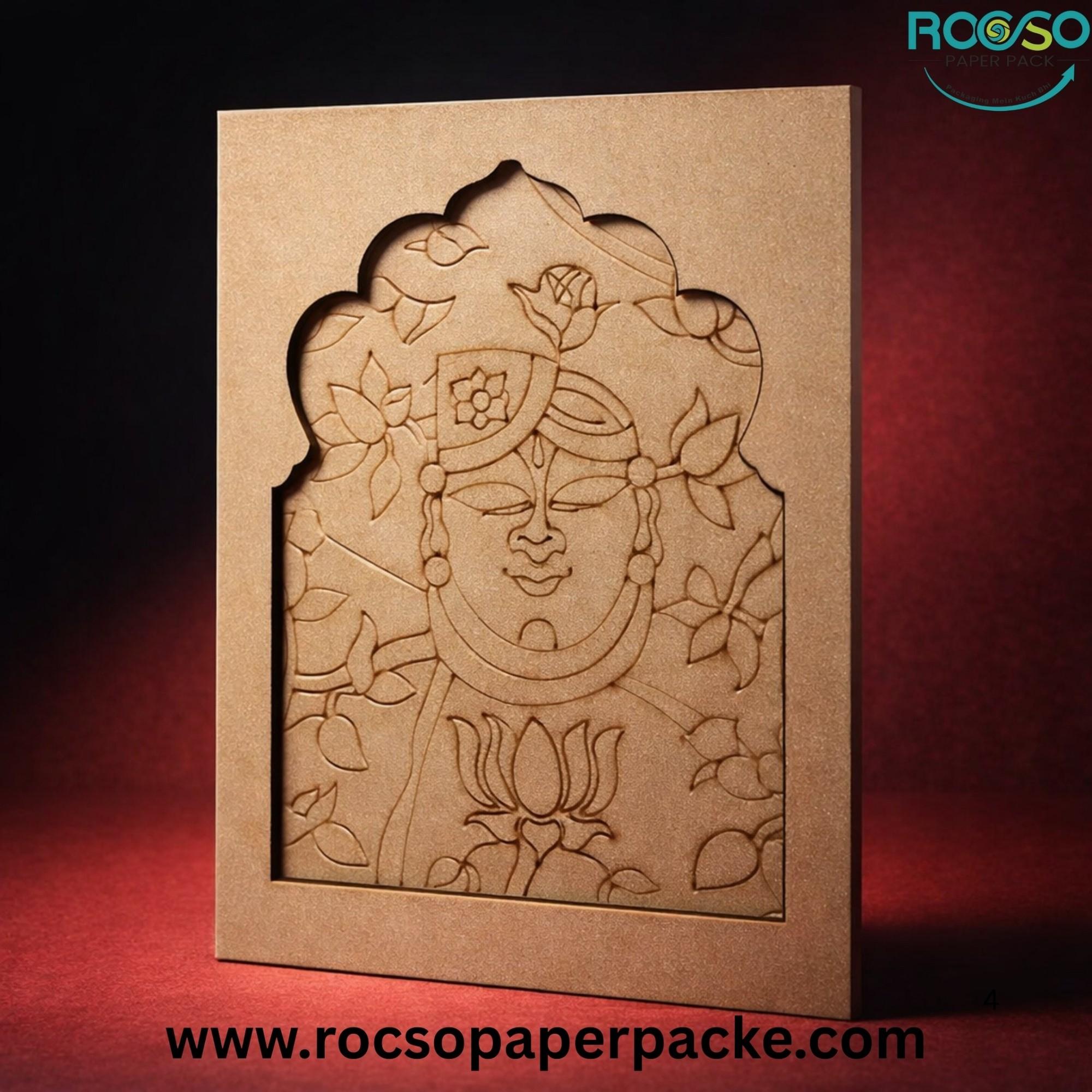 Expertly laser-cut on high-quality MDF board, this artwork features a serene deity form surrounded by lotus and floral motifs, symbolizing purity, peace, and spiritual energy.